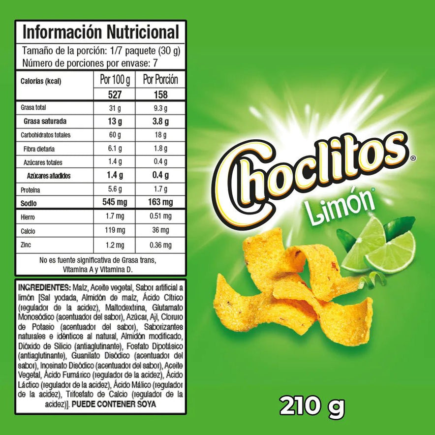 Choclitos Limón Familiar - 210g (7.41 oz) - Family-Sized Crunchy Corn Snacks with Lime Flavor