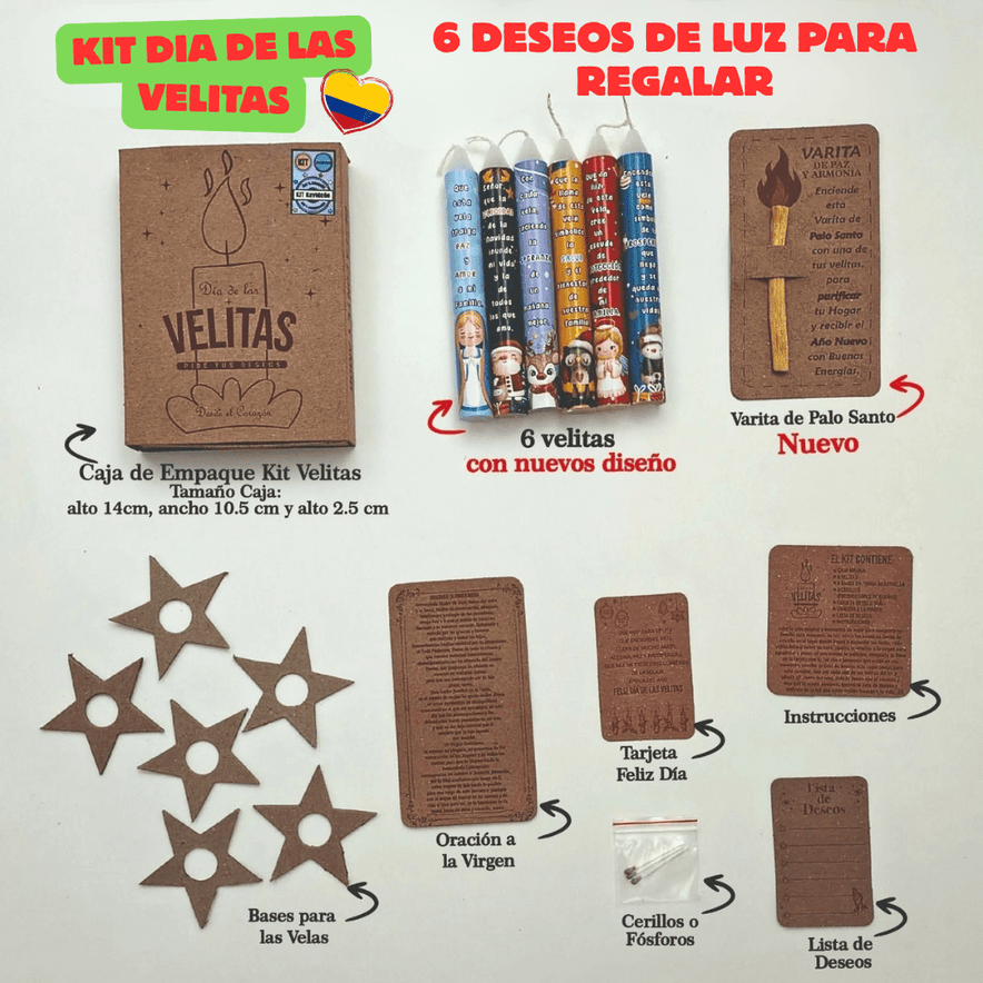• Complete Colombian Velitas Night kit with candles and Palo Santo