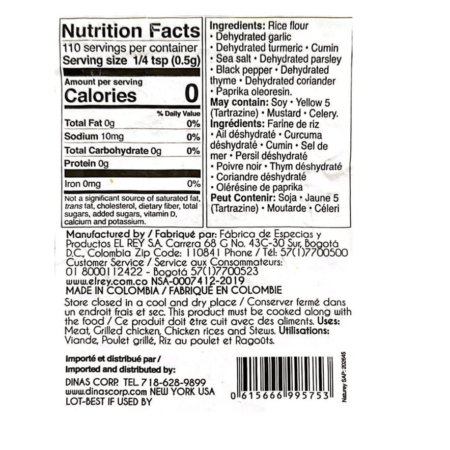 • Trusted El Rey quality: Part of El Rey’s line of quality seasonings, known for their flavor and authenticity.